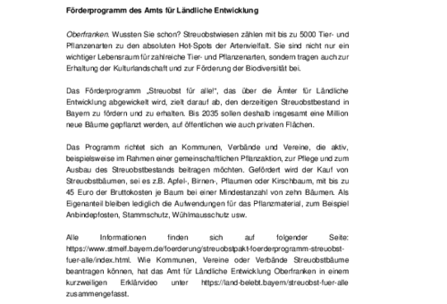 Streuobst für alle! Förderprogramm des Amts für Ländliche Entwicklung.