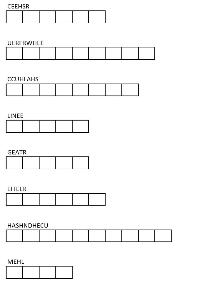 Hier sind uns wohl die Buchstaben durcheinander gekommen, in der richtigen Reihenfolge ergeben sich Begriffe zum Thema Feuerwehr.