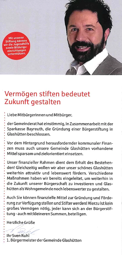 Die Bürgerstiftung ist auf folgenden Gebieten zum Wohle der Bevölkerung von Glashütten tätig: