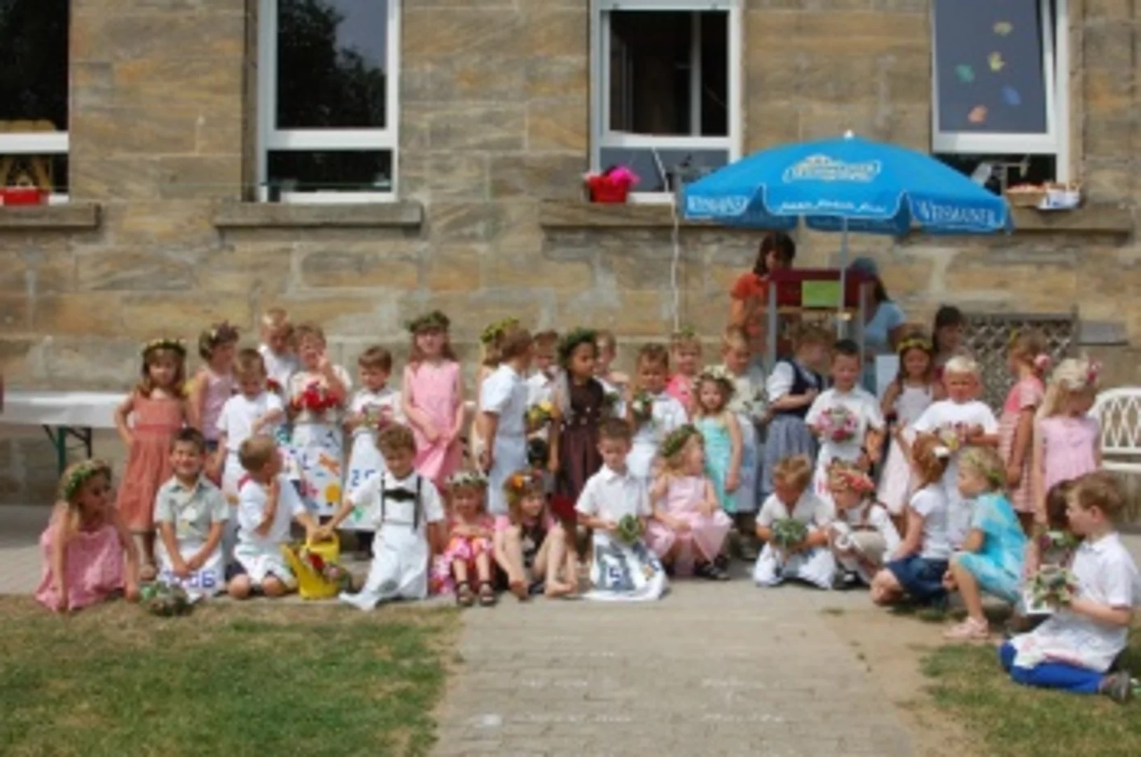 Da wurde die Idee geboren, abseits von den üblichen Festen eine Kerwa für den Kindergarten zu halten, wobei die Mädchen und Jungs wie bei der „richtigen Kerwa“ als Kerwamadla und Kerwaburschen auch „aufspielen“ sollten.Diese Idee hat sich schliesslich dank der Erzieherinnen umsetzen lassen und so gibt es seitdem ein nicht alltägliches Kindergartenfest, das seinesgleichen sucht.