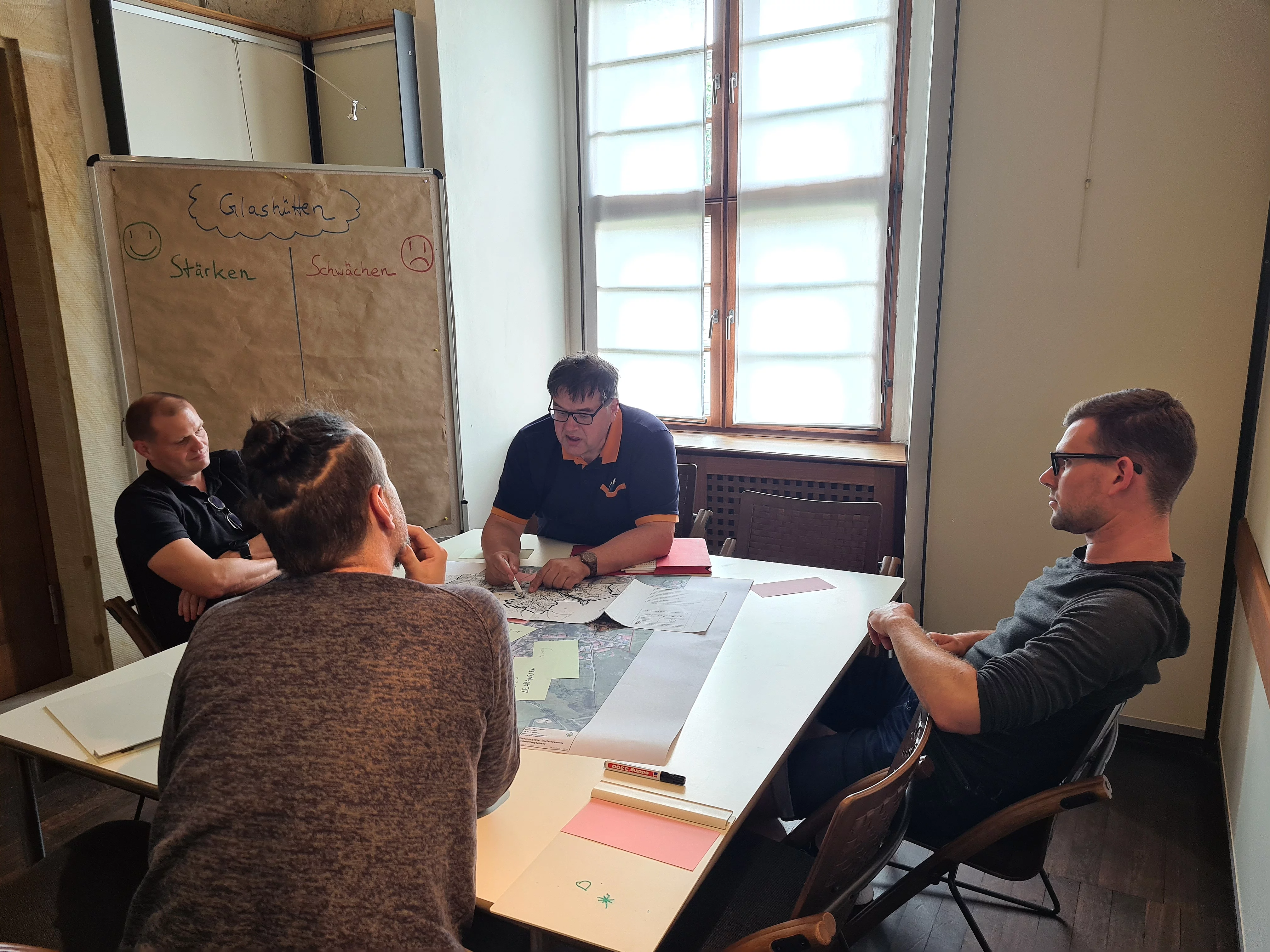 Während des Seminars wurden in Kleingruppen die Stärken und Schwächen von Glashütten analysiert. Dabei kristallisierten sich drei zentrale Themenfelder heraus: Das Dorfleben und die Freizeitmöglichkeiten, das Ortsbild und die Leerstände sowie die Dorfökologie und Naherholung.