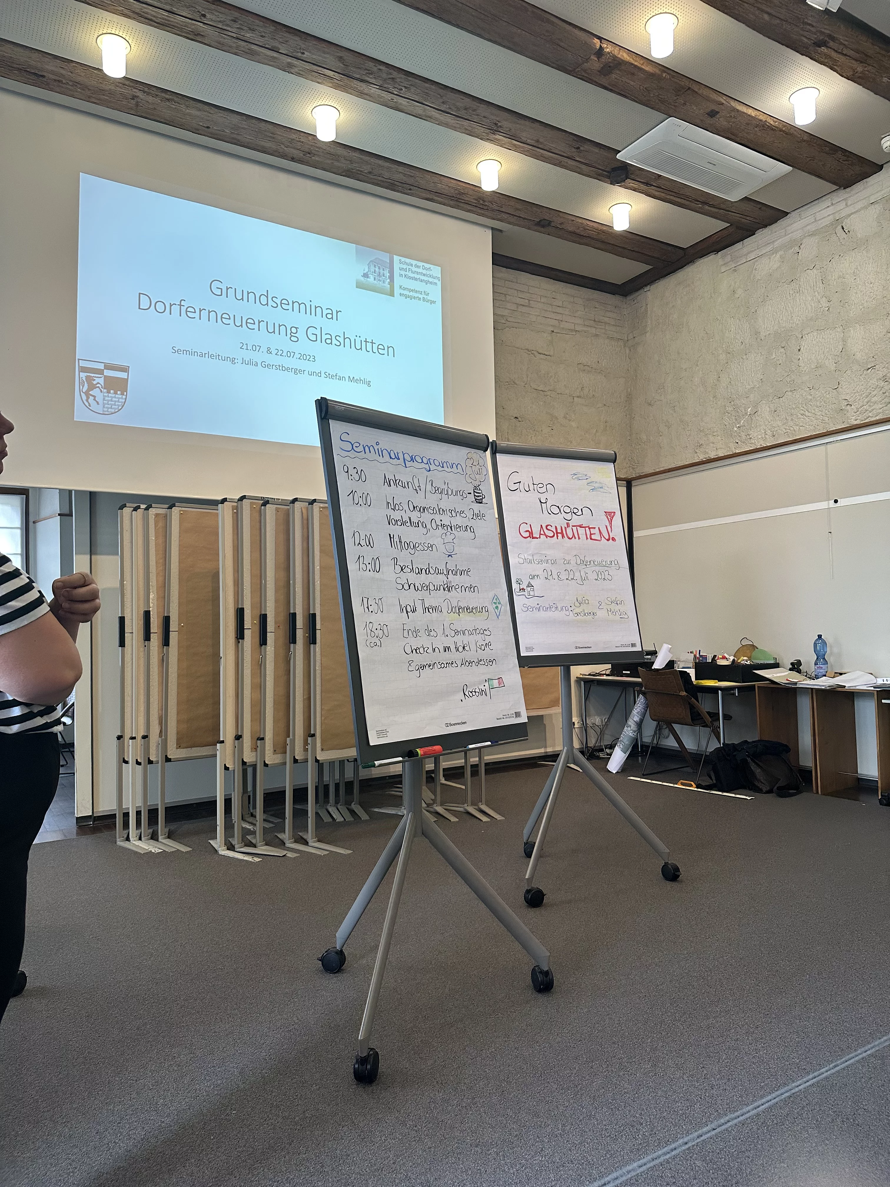 Die Informationsveranstaltung im Feuerwehrhaus Glashütten im Juni war der Startschuss und wurde von über 60 Personen besucht. Im Anschluss hatten bis zu 20 Bürgerinnen und Bürger die Möglichkeit, sich für ein Grundseminar zur Dorferneuerung in der Schule für Dorf- und Flurentwicklung Klosterlangheim anzumelden. Dieses Seminar erwies sich als wahrer Erfolg und beeindruckte vor allem durch seine bunte Mischung von Teilnehmerinnen und Teilnehmern: Alt eingesessene Bürgerinnen und Bürger trafen hier auf neu Zugezogene, und Jung und Junggebliebene begeisterten sich gemeinsam für die Zukunft ihres Dorfes.